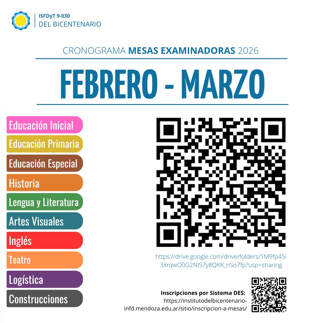 Se pone a disposición el cronograma de mesas examinadoras de febrero-marzo: https://drive.google.com/drive/folders/1M9fp45i3XrqwO0G2NIS7y8QKK_nSo7fp?usp=sharing